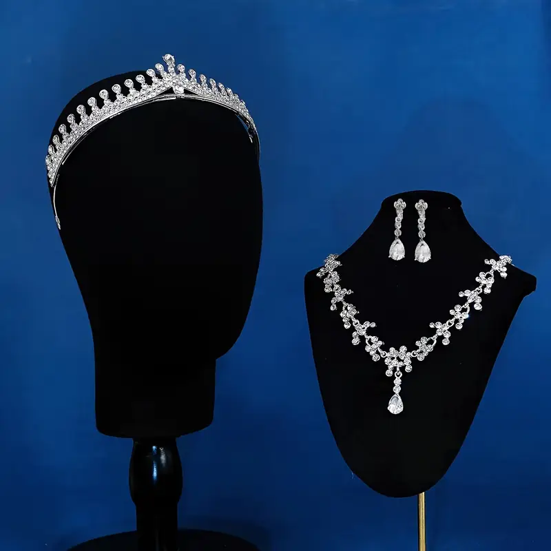 MevcutZinc alaşım üzerine taşlarla süslenmiş bu gelin tacı seti, zarif kolyesi ve uyumlu küpeleriyle özel gününüzde ihtişam katacak. Gelinlik tacı arayanlar için ideal bir seçim.