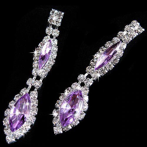 Gelin Takı Seti Kolye Küpe Mor Renk