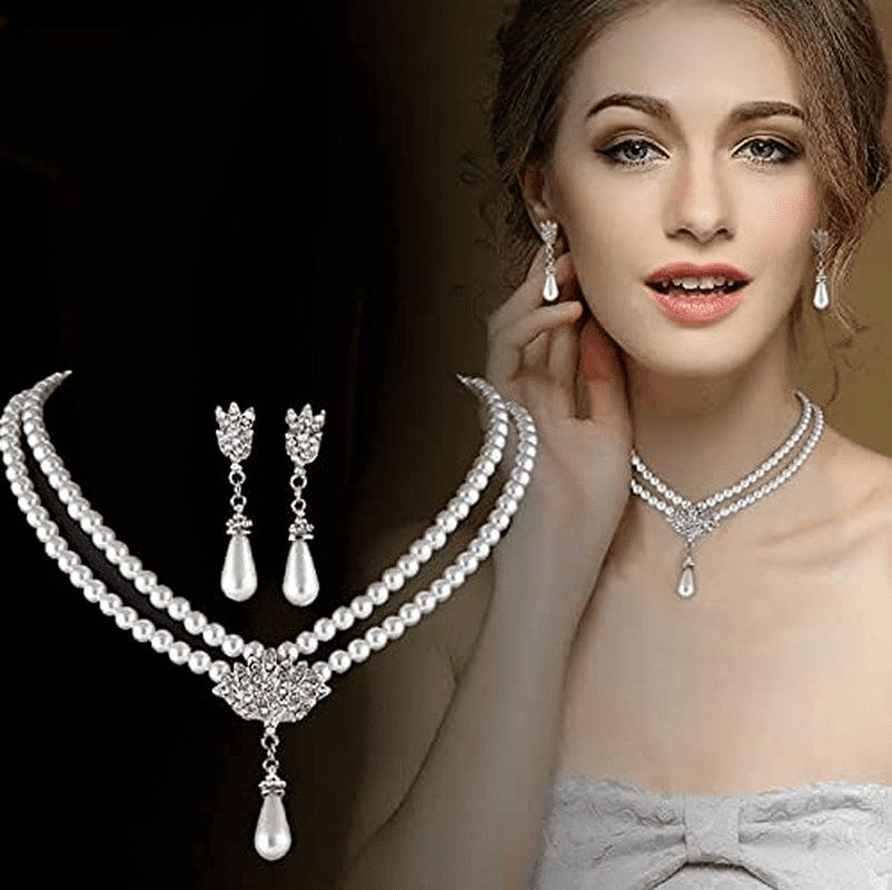 - Işıltılı görünüm ve zarif tasarım inci kolye ve küpe takı seti.